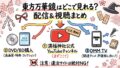 ぶっちゃけ、今の配信状況はかなり厳しいんだけど、それでも視聴するチャンスはあるのか、関連作品を楽しむにはどこがいいのか、詳しく解説していくね。
